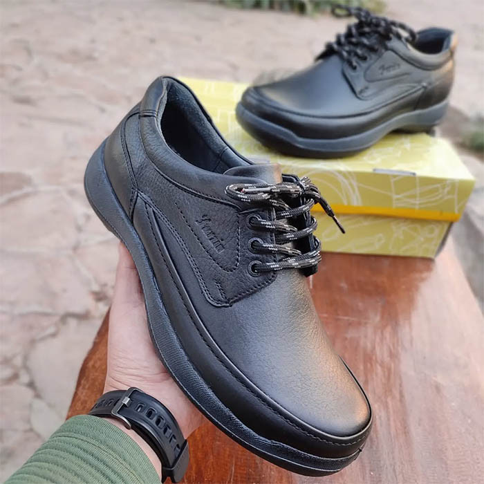 کفش مردانه مدل چرم طبیعی 702 YF رنگ مشکی